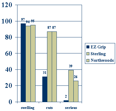 Grip padded traps received cuts. A higher frequency of more serious